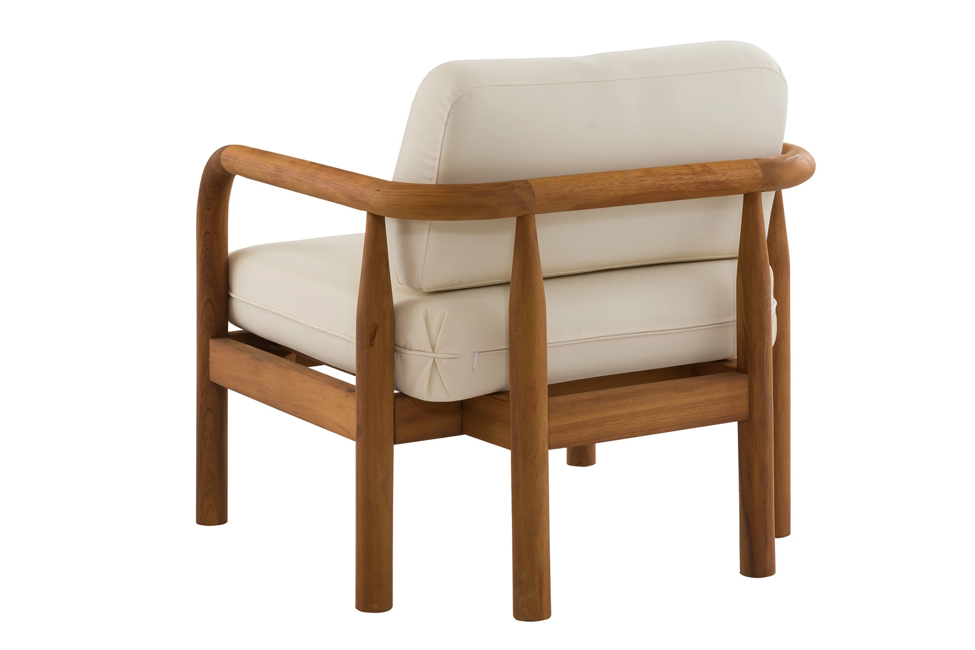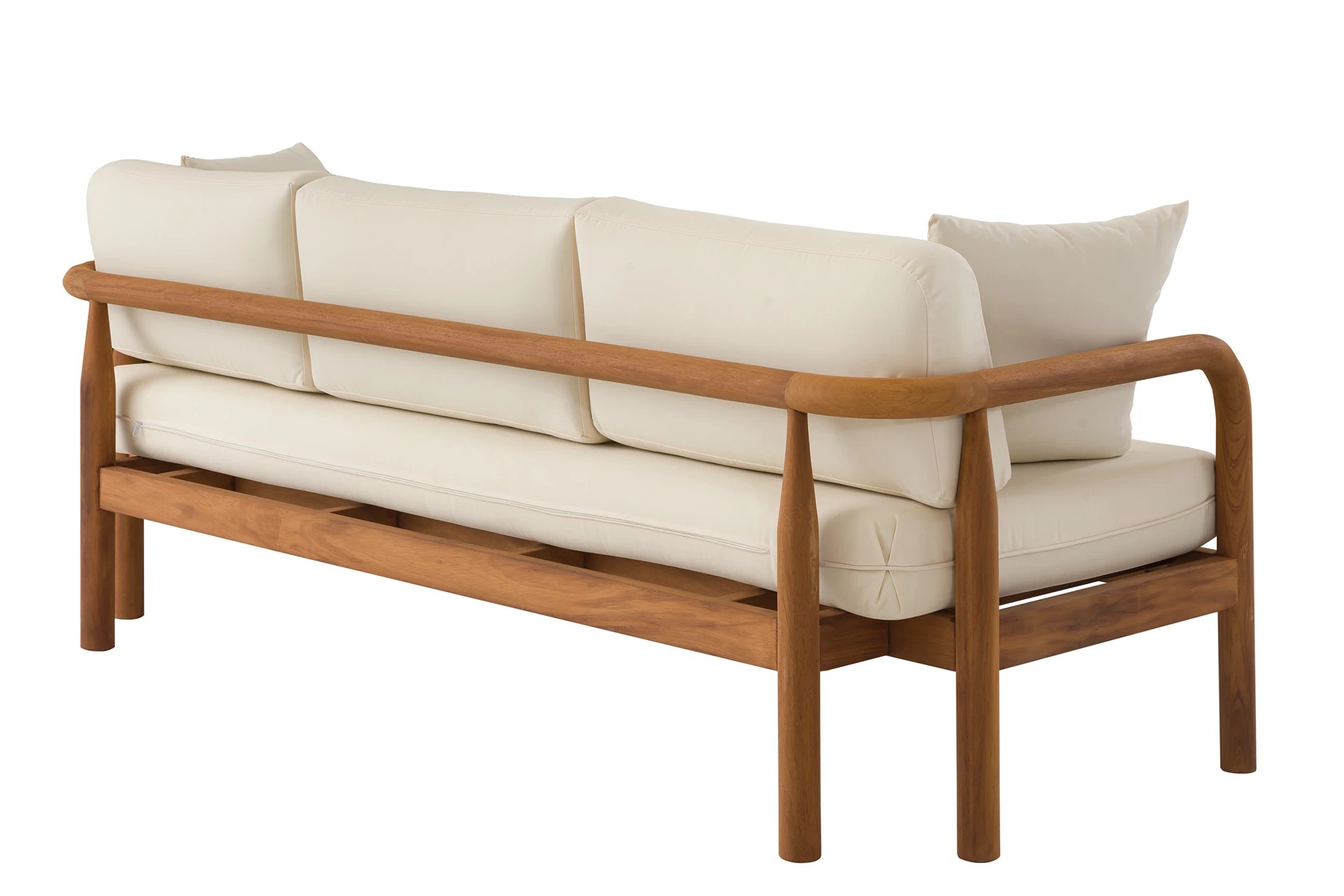 Embrace outdoor comfort with the Defne garden seating group, designed to elevate your patio or garden space. Featuring a sleek, rounded wooden frame, this set includes a plush three-seater sofa and two armchairs, all paired with soft, cream-colored cushions for ultimate relaxation. The spacious coffee table is perfect for entertaining or enjoying your morning coffee in the fresh air. Crafted from premium wood, the Defne set is both stylish and durable, promising to be a timeless addition to your outdoor retreat.