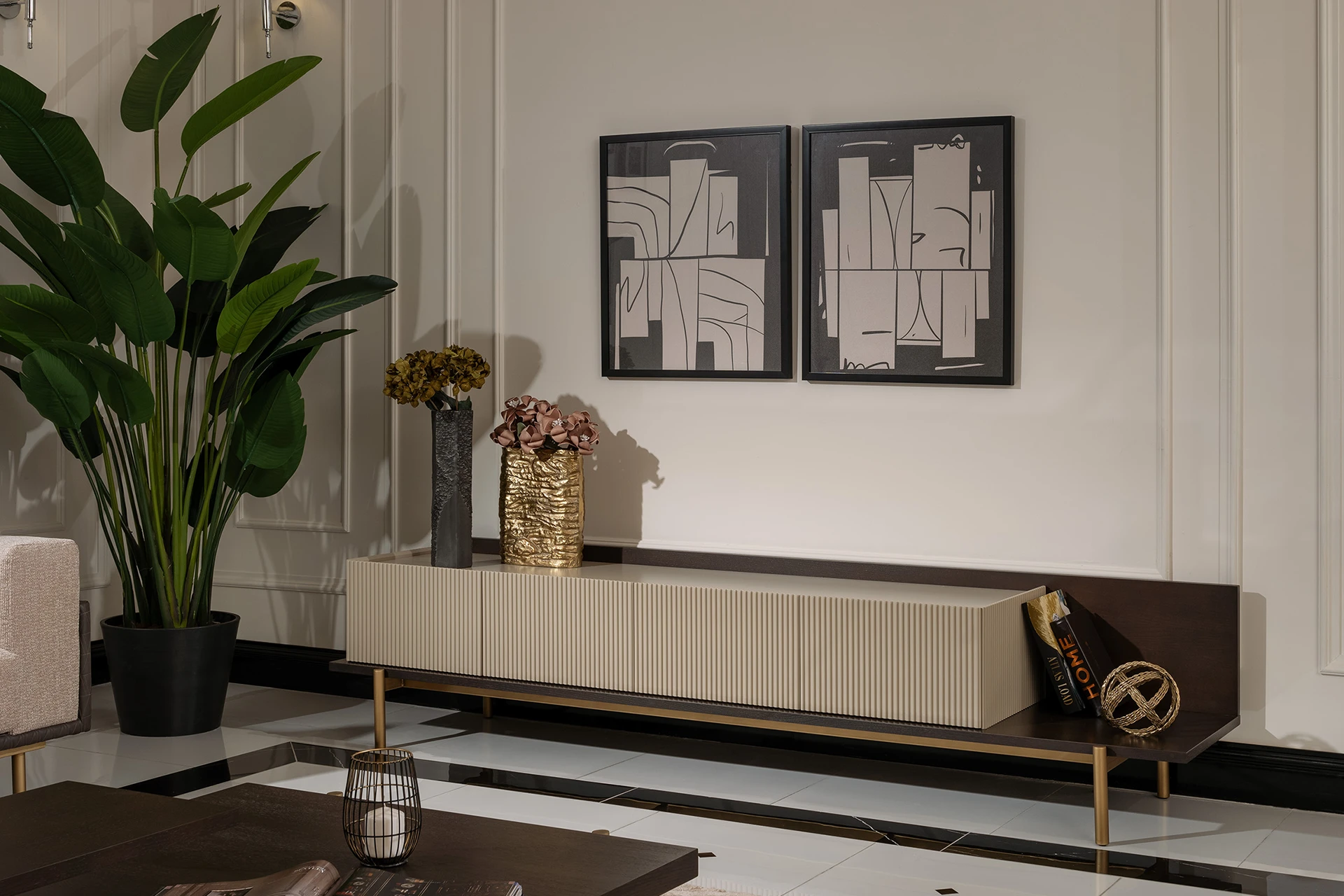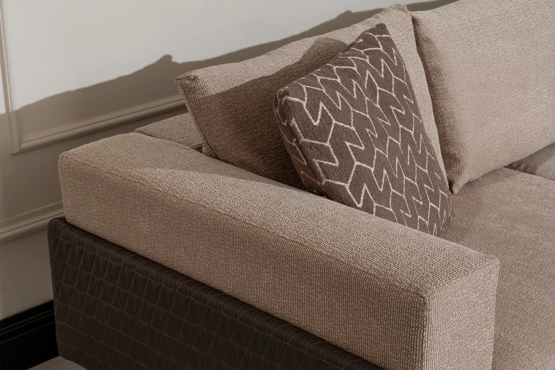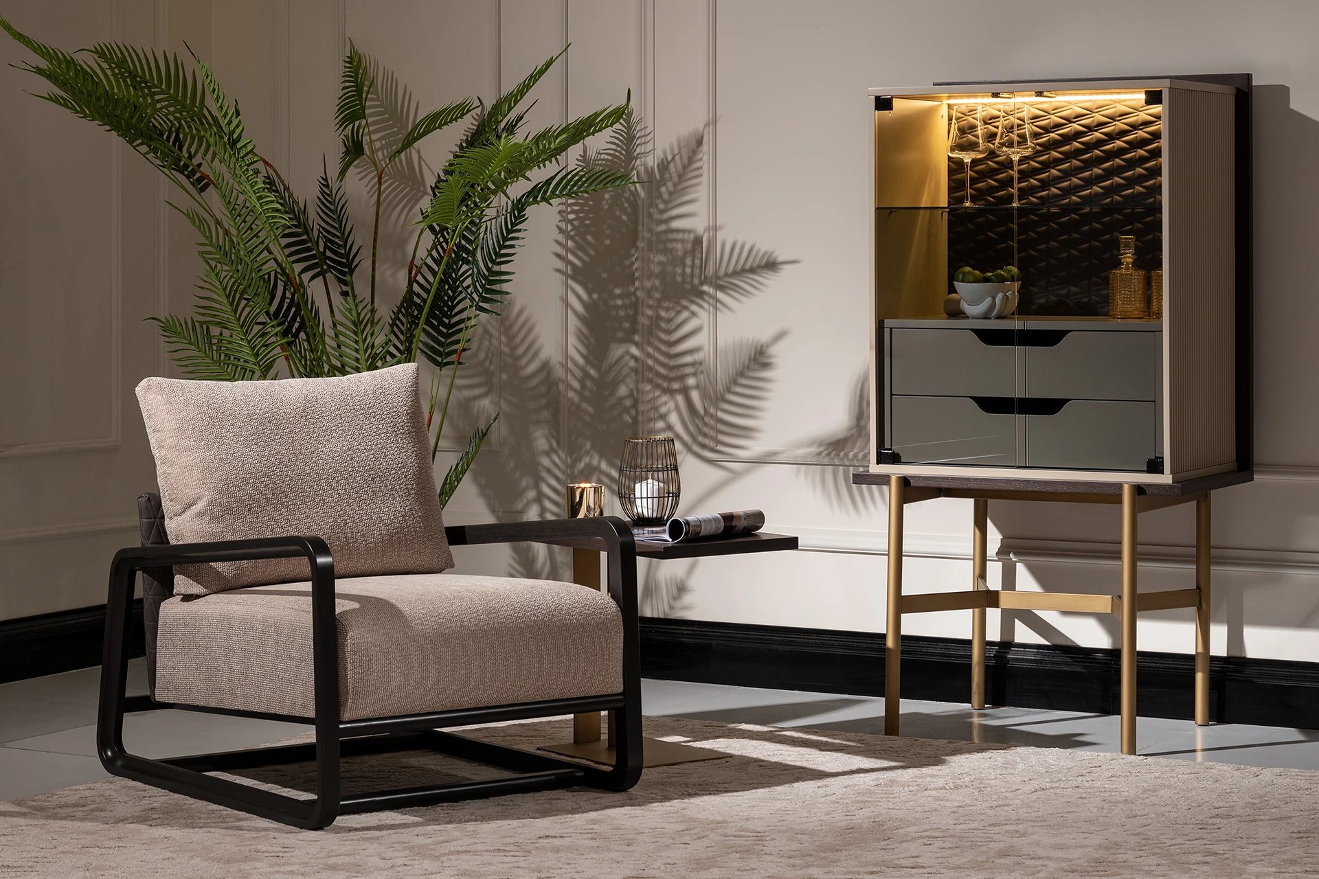 The Etna sofa set epitomizes modern luxury with its clean lines and sophisticated design. The soft upholstery, paired with a sturdy frame, ensures comfort and durability. This set includes a sleek sofa, a stylish armchair, and a contemporary coffee table, creating a cohesive and inviting atmosphere. Brass accents on the table legs add a touch of elegance, while the neutral color palette seamlessly blends with various interior styles. Ideal for both relaxation and social gatherings, the Etna set brings a refined yet cozy vibe to any living space.
