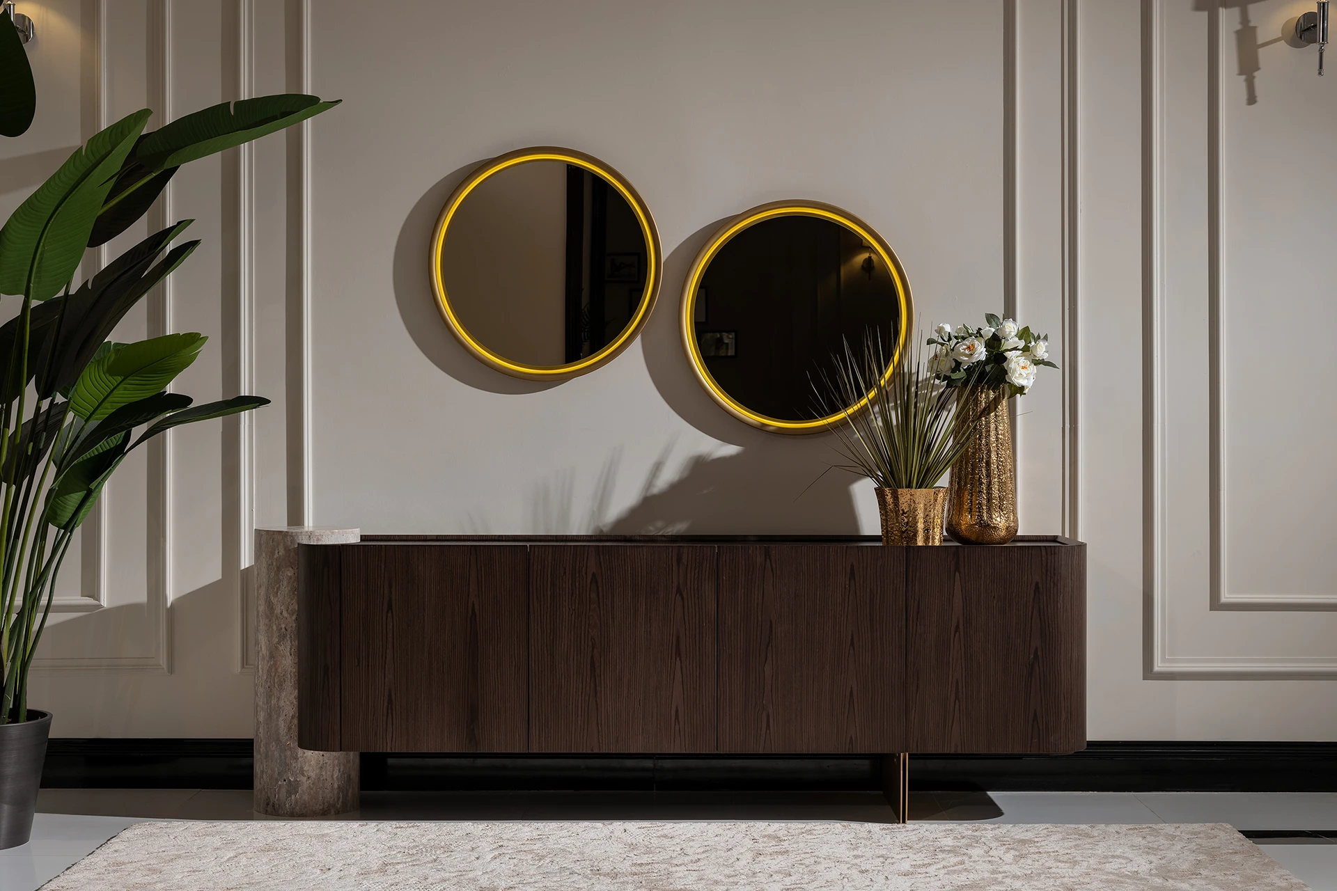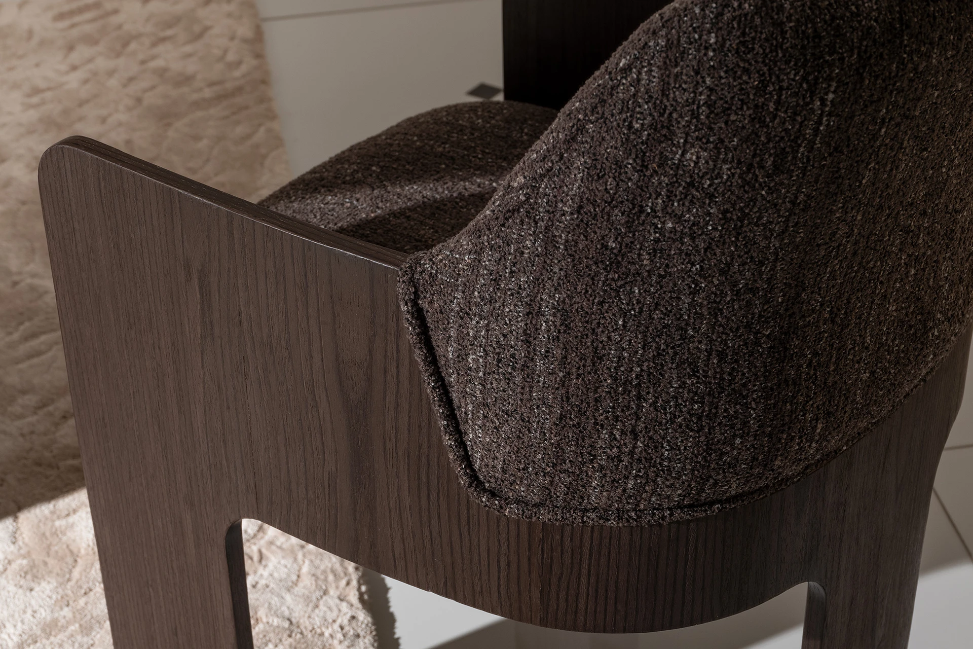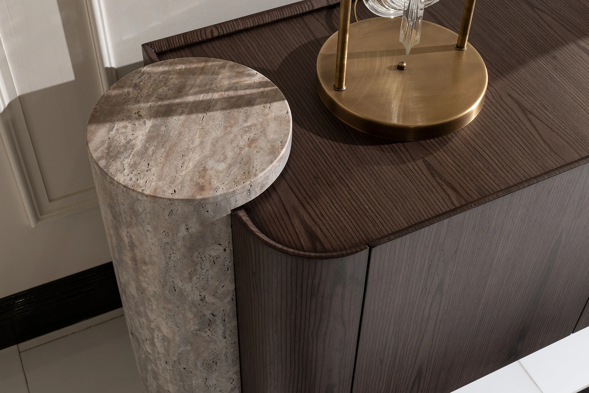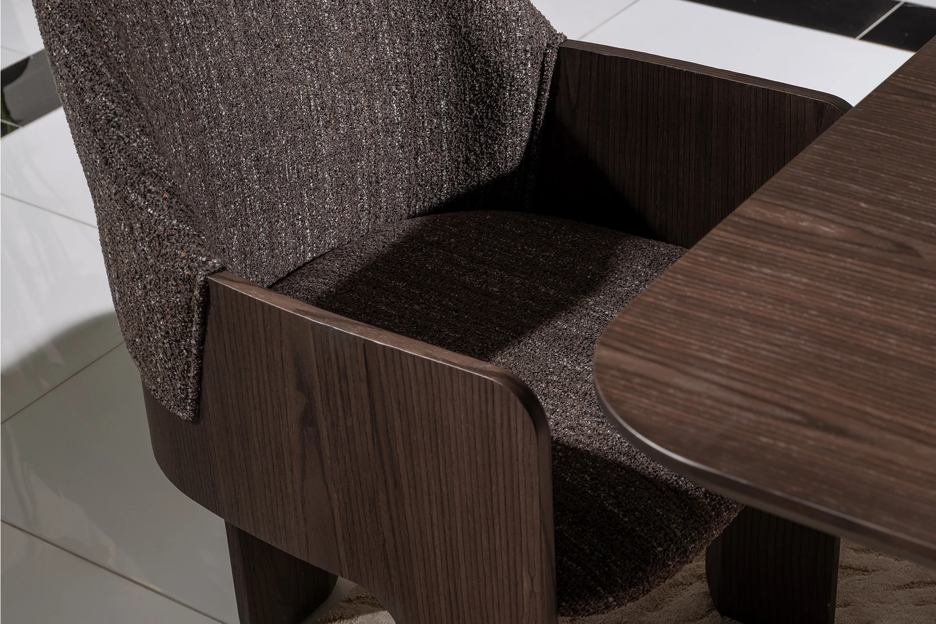 The Marmo dining room set redefines modern elegance with its sleek lines and minimalist design. The dining table showcases a unique blend of materials, featuring a stone-textured pedestal that complements the smooth, dark wooden tabletop. Paired with plush, comfortable chairs that provide both style and support, this set is designed for intimate gatherings and sophisticated dining experiences. The neutral tones and clean forms allow it to seamlessly integrate into any contemporary space, while the subtle accents of metal add a touch of luxury. Ideal for those who appreciate refined, modern dining aesthetics.