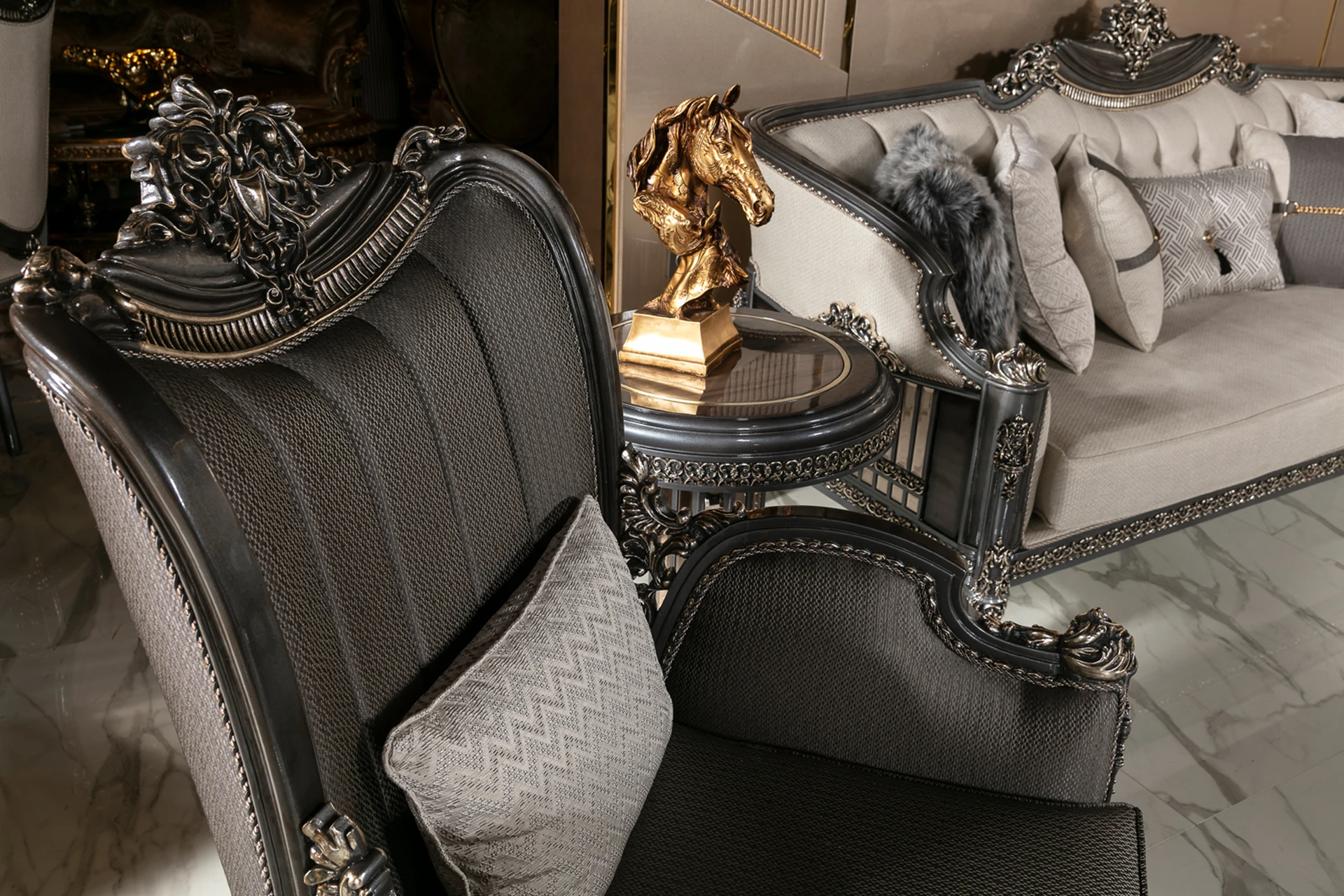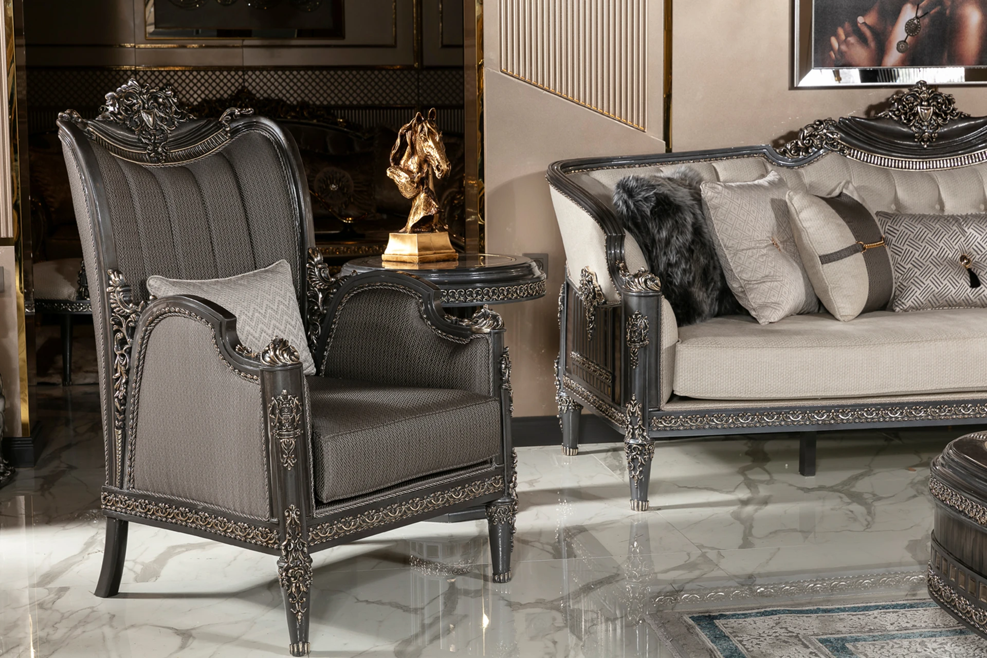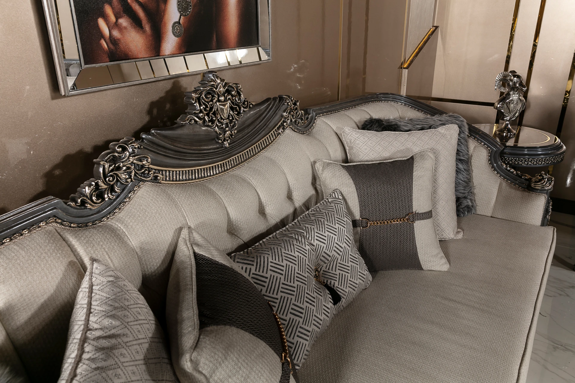 The Queen sofa set is a masterpiece of elegance and timeless design, perfect for those who appreciate classic sophistication in their living spaces. With its intricately detailed woodwork and luxurious upholstery, this set brings a regal touch to any room. The high-backed sofas and matching chairs provide not only aesthetic appeal but also supreme comfort. Rich in texture and lavish in style, the queen sofa set is ideal for creating a space that exudes luxury and refinement.