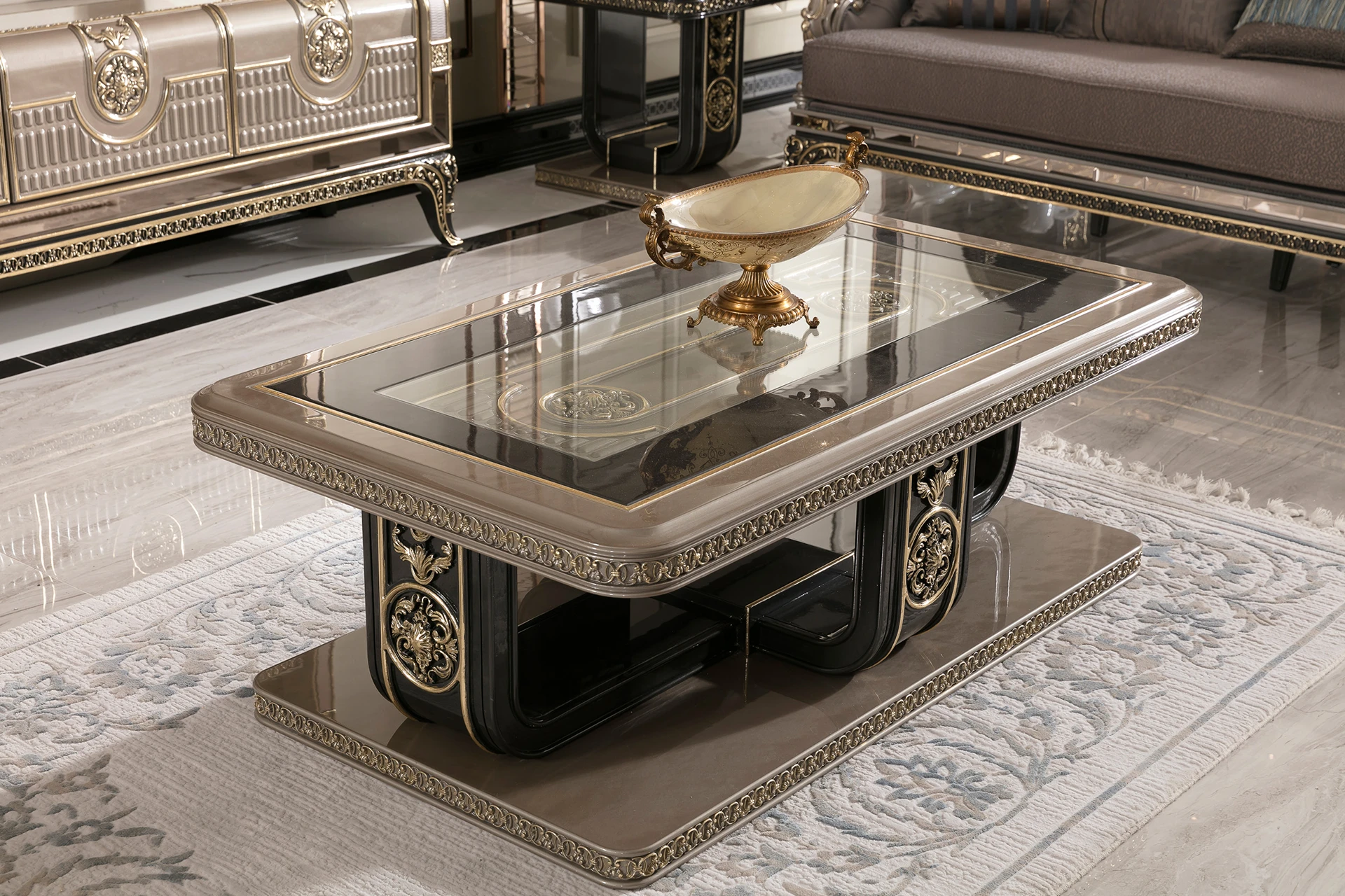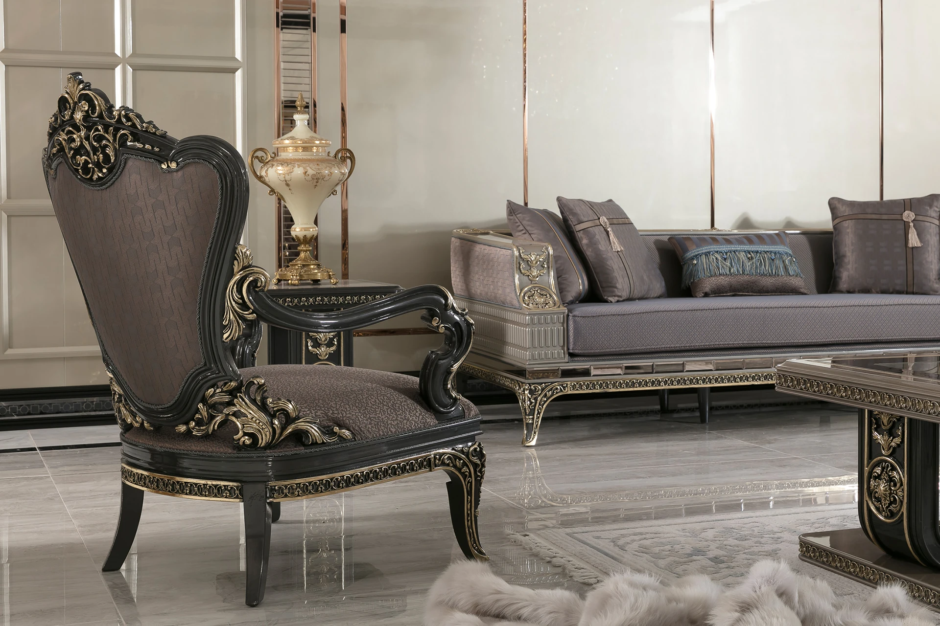 The Riva sofa set from the classic collection exudes a timeless elegance and luxurious charm. Its deeply tufted backrests and gracefully carved frames bring a touch of regal sophistication to your living space. The sumptuous upholstery, in rich tones, combines with intricate detailing on the armrests and legs, creating a sense of classic opulence. Plush cushions enhance comfort, making the set perfect for both formal gatherings and relaxing moments. The Riva sofa set elevates any room with its exquisite design and unmatched craftsmanship, embodying the essence of refined luxury.