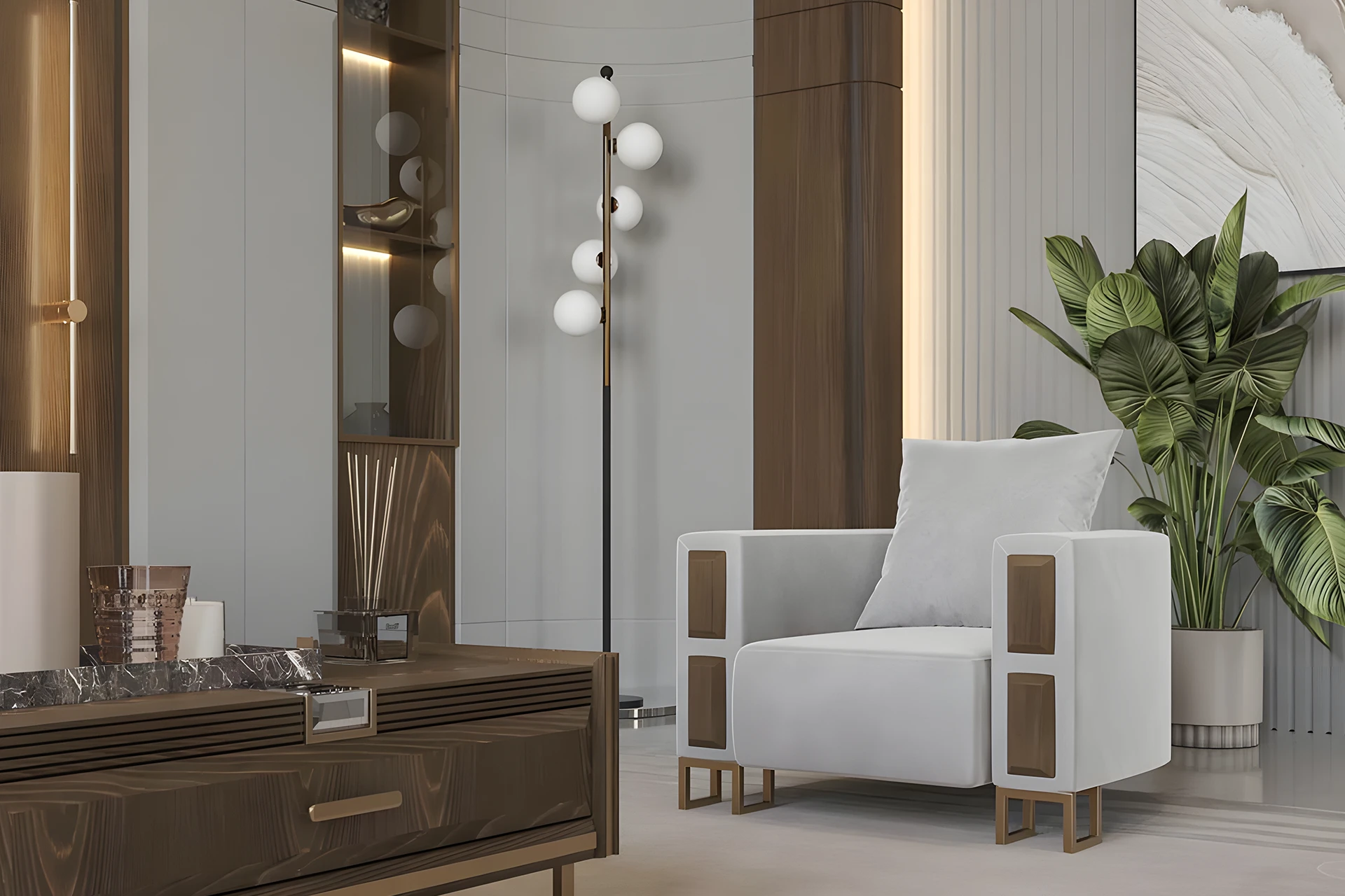 The Zegna sofa set embodies modern sophistication with its sleek lines and luxurious finishes. The sofas feature plush cushioning and a minimalist design, seamlessly blending comfort with style. Wrapped in a neutral fabric, the set exudes a serene ambiance, enhanced by the wood and metal accents that add a touch of contemporary elegance. The matching armchairs and coffee table complete the look, providing a cohesive and inviting living space. Ideal for those who seek a refined yet comfortable environment, the Zegna sofa set is perfect for elevating any modern home.
